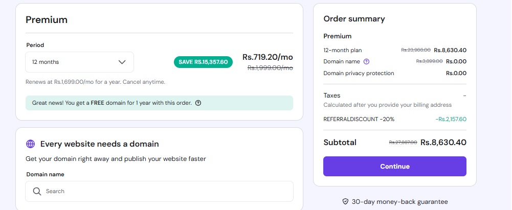 12 Months web hosting with FREE Domain and SSL in almost 8700RS